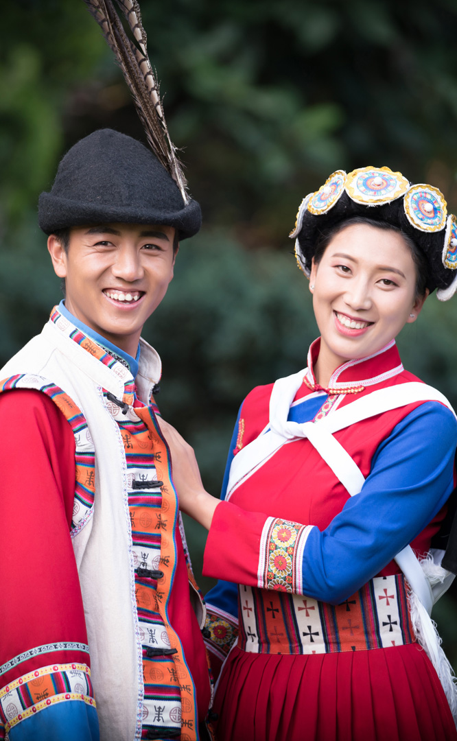 彝族在云南境內(nèi)約471萬人,是省內(nèi)人口最多、分布最廣的少數(shù)民族,主要聚居在金沙江、元江流域和哀牢山、無量山腹地。彝族是一個能歌善舞的民族,民間打歌、跳樂之風(fēng)盛行,大三弦、跌腳舞久負(fù)盛名。火把節(jié)是彝族最具特色的民族節(jié)日。彝族村占地50余畝,三虎浮雕墻與虎頭內(nèi)祖師形象表現(xiàn)了彝族虎鷹文化。太陽歷廣場圖騰柱上有太陽、虎、火和八卦圖形象,周圍環(huán)繞著10個朝向不同的月球造型,外圓周有12生肖石雕。依山而建的“...